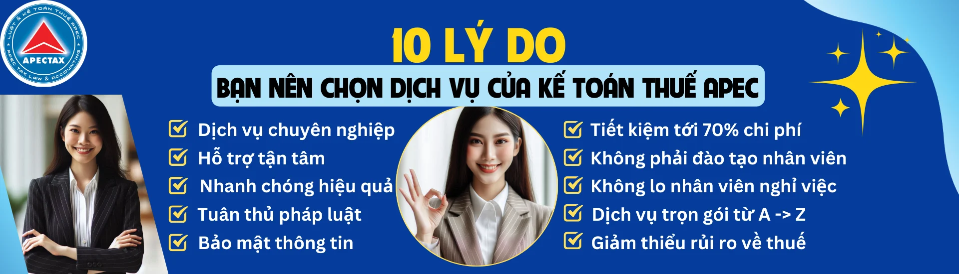 Kế Toán Thuế APEC là địa chỉ đáng tin cậy cho mọi nhu cầu của doanh nghiệp từ thành lập doanh nghiệp đến hoàn thành các nghĩa vụ về kế toán - thuế. Chất lượng dịch vụ hàng đầu với chi phí hợp lý là cam kết APECTAX dành cho mọi khách hàng.